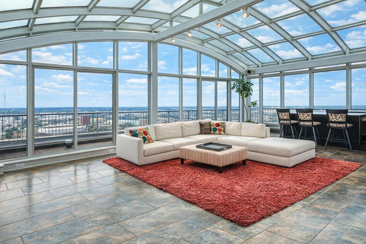 Positioned atop the skyline, this 18th-floor executive penthouse represents one of the most exclusive luxury residences in downtown Grand Rapids--designed for those who value privacy, prestige, and elevated living.At the heart of this one-of-a-kind residence is a rare, glass-enclosed sky lounge spanning over 500 square feet--an architectural showpiece featuring a full wet bar and panoramic city views. Widely regarded as one of the most distinguished private entertaining spaces in Grand Rapids, this signature feature delivers a seamless indoor-outdoor experience that rivals top-tier luxury properties in major metropolitan markets.Encased in floor-to-ceiling glass, the residence captures unobstructed, sweeping views of the downtown skyline, Grand River, and beyond--offering an ever-changing backdrop of natural light and city energy from nearly every room. A full wraparound terrace further expands the living experience, creating multiple outdoor environments for private relaxation or large-scale entertaining--an exceptionally rare offering in the downtown market.Inside, the open-concept design is both sophisticated and functional, with expansive living and dining areas tailored for executive lifestyles. The chef-inspired kitchen features custom cabinetry, premium finishes, and generous workspace--ideal for both everyday living and hosting at scale.The primary suite serves as a private executive retreat, elevated above the city with commanding views and designed for refined comfort. The spa-caliber bathroom includes a steam shower, heated floors, and luxury finishes--delivering a daily wellness experience comparable to five-star accommodations.Residents benefit from a full-service luxury amenity package, including 24/7 security, indoor pool, hot tub, state-of-the-art fitness center, and an expansive outdoor recreation deck with basketball and tennis courts. A climate-controlled skybridge provides seamless connectivity--an added level of convenience rarely found in downtown living.Strategically located near the Grand River, riverfront amphitheater, and the citys new professional soccer stadium, this residence sits at the epicenter of Grand Rapids continued economic growth, cultural expansion, and real estate appreciation.Featuring two bedrooms, two full bathrooms, and the rare advantage of two reserved parking spaces, this penthouse is uniquely positioned within the market.This is more than a residence--it is a legacy asset, a private sanctuary, and a definitive statement of success in the heart of Grand Rapids.